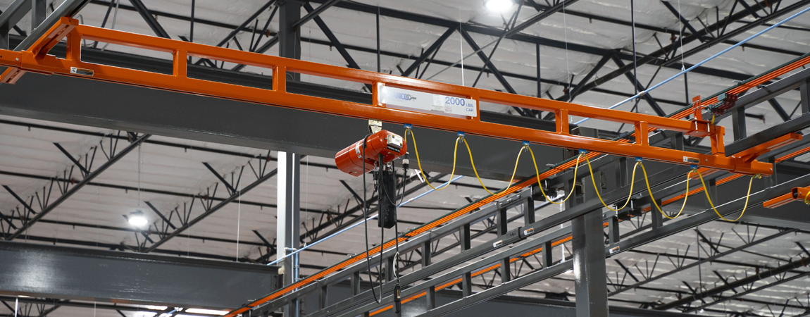The Freestanding Workstation Bridge Crane System is used to move heavy components and completed sub-assemblies from their position where they enter the facility to locations where workers can assemble them. The mixed-capacity system design is based on Xtreme Manufacturing’s specific production needs as they handle loads of different sizes and weights. This layout provides a higher level of versatility from a single system.